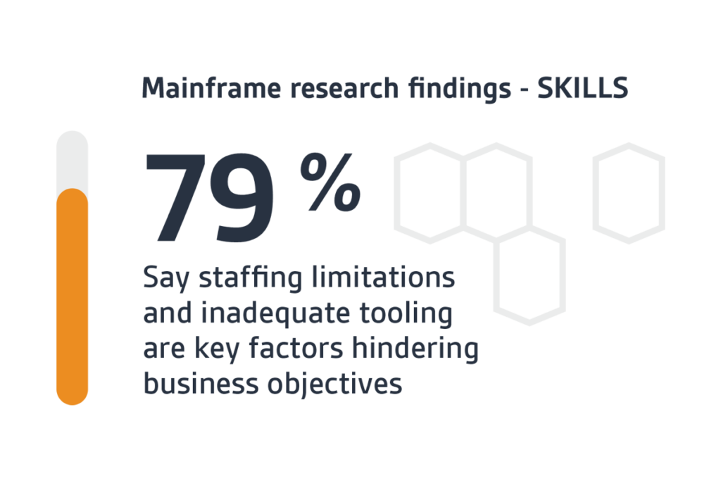 In the 2025 Mainframe Market Survey, staffing limitations, and inadequate tooling (both 79%) were cited as key factors hindering business objectives. Almost all (95%) said modern tools and capabilities can help close skill gaps. 83% noted it eased recruitment difficulties of graduates/early career individuals.